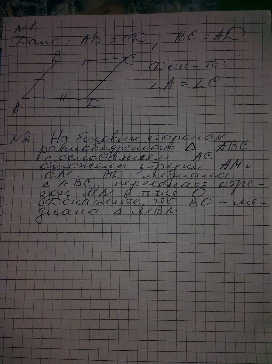 1задача) так как противолежащие стороны равны. то это параллелограмм а так как в параллелограмме проииволежащие углы равны то уголС равен углу А