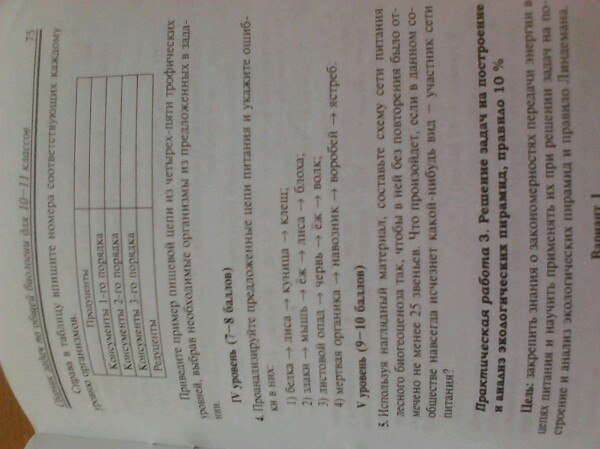 Мёртвая органика - дождевой червь - ястреб - лисица.