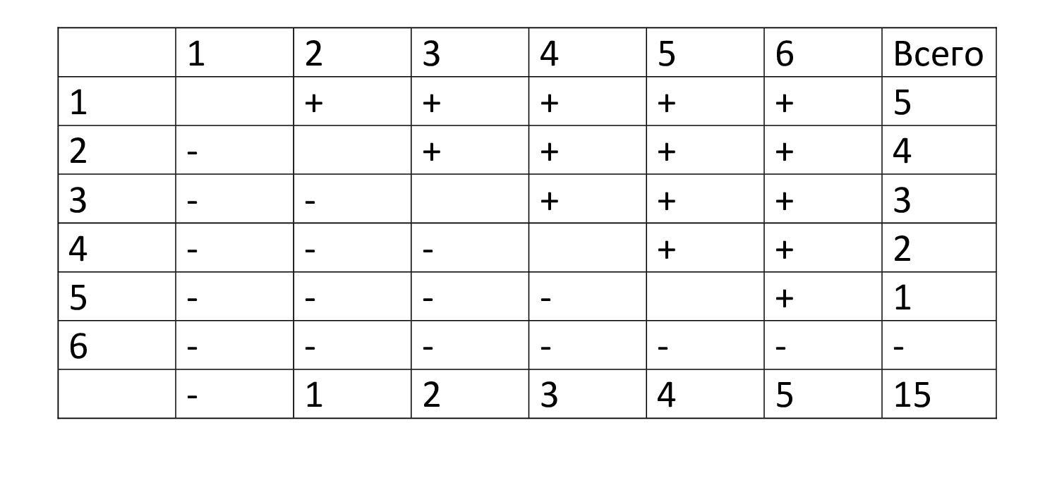 5+4+3+2+1 = 15 состязаний всего проведут мальчики .