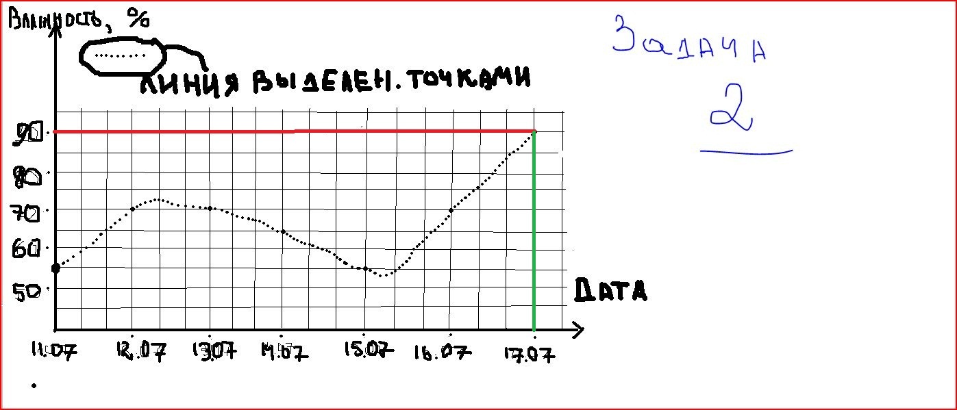 В задаче 2 ответ 17.07, т.к. в этот деть самая большая влажность: на рис. красный- самая большая влажность, а зеленым- день.
