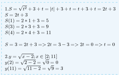 1. Функция задана формулой S= корень из t в квадрате +3 +t (не под корнем)