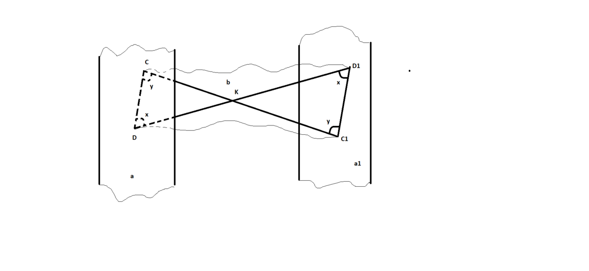 Откуда из подобия треугольников по накрест лежащим углам верно что: CK/KC1=CD/C1D1 С1D1=x