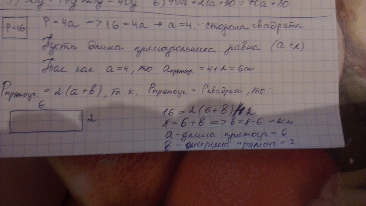 Периметр квадрата равен 16 см. Начерти прямоугольник , периметр которого равен периметру квадрата, а его длина на 2 см больше длины стороны квадрата. Как это