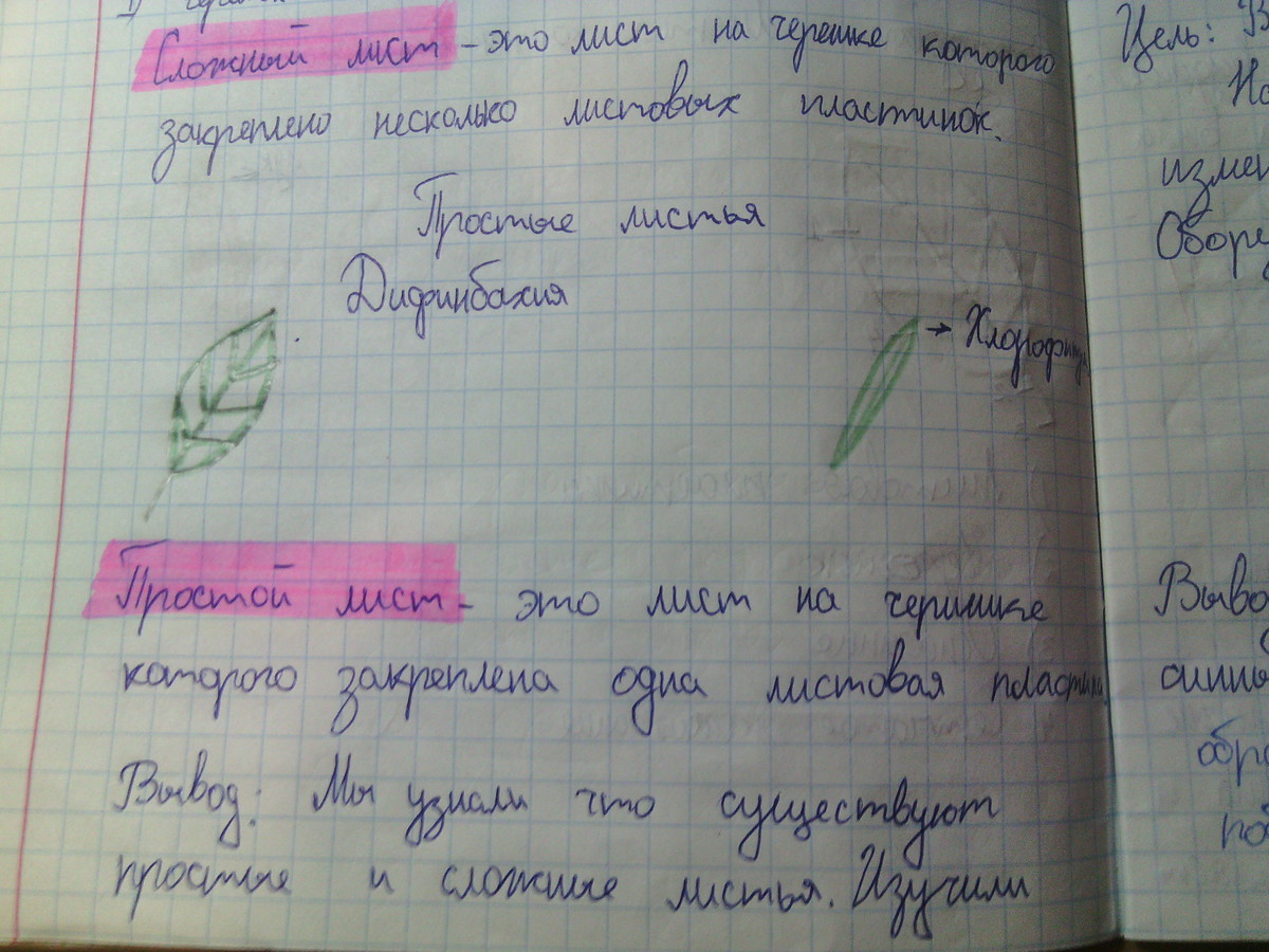 растения,гербарии.ход работы:1.рассмотреть лист,найти его части,зарисовать их в тетрадь и подписать.2.Рассмотреть тип жилкования и записать в тетрадь.Рассмотреть гербарные экземпляры найти среди них простые и сложные листья.4.Сделать вывод о различии простых и сложных листьях.