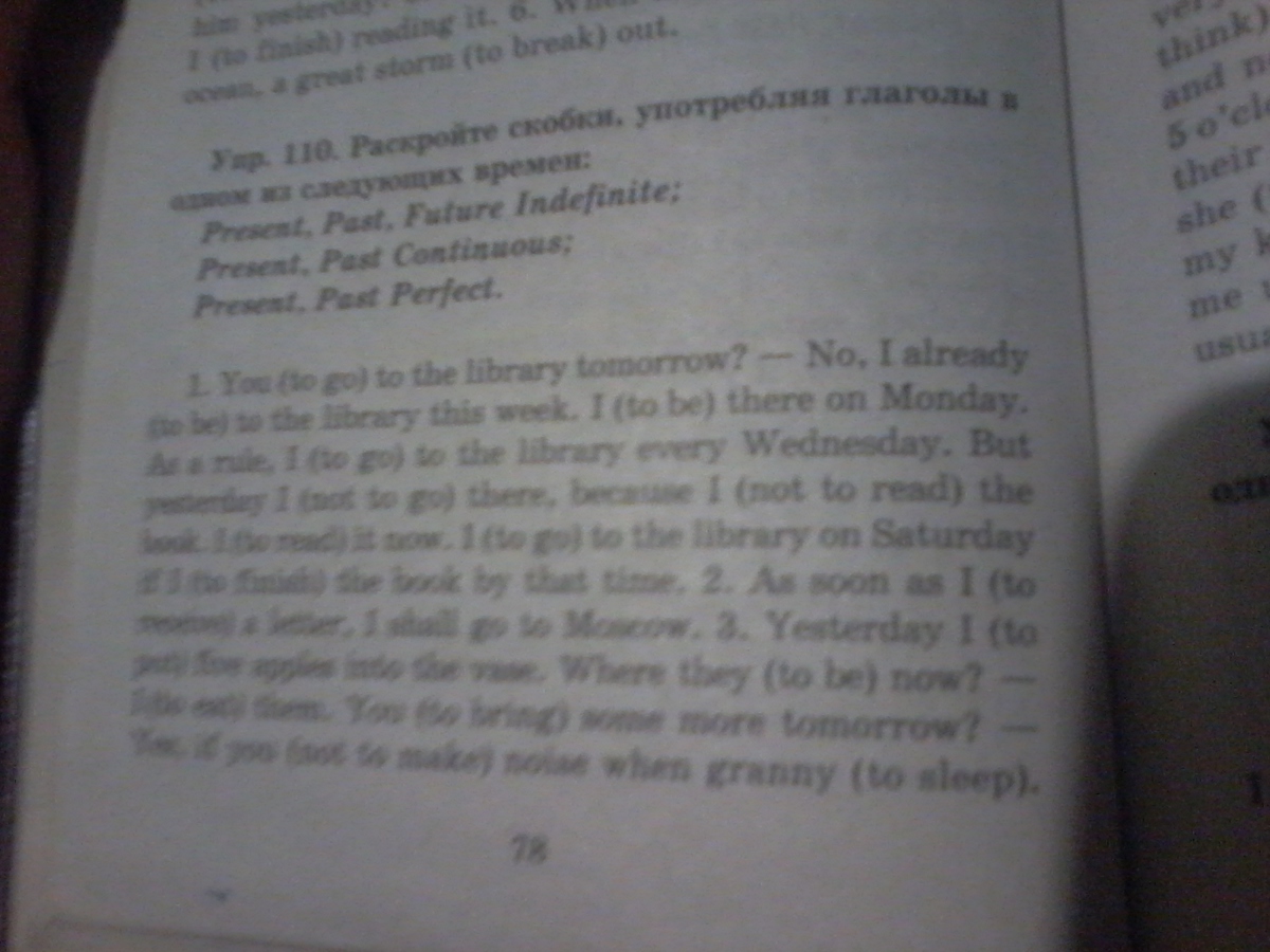 раскройте скобки, употребляя глаголы в одном из следующих времен.