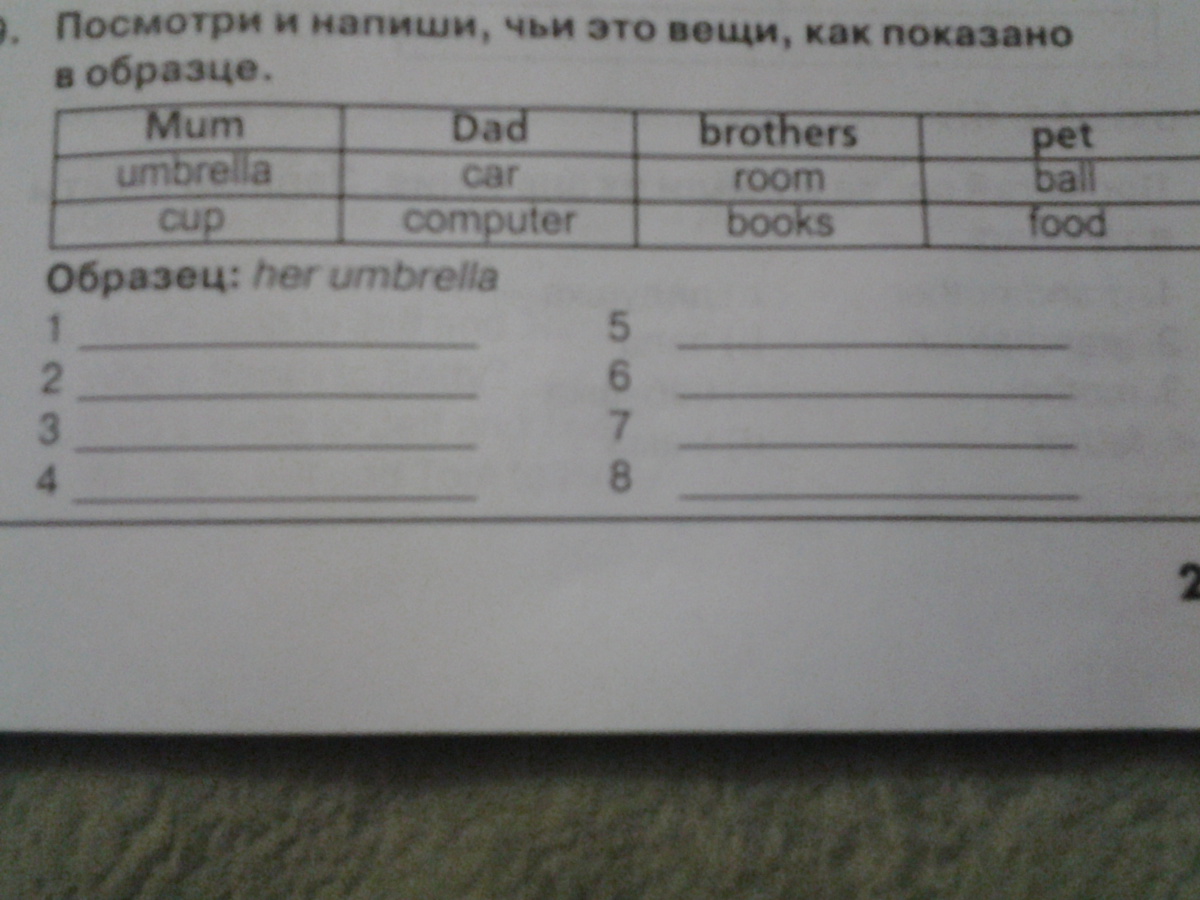 Образец: her umbrella