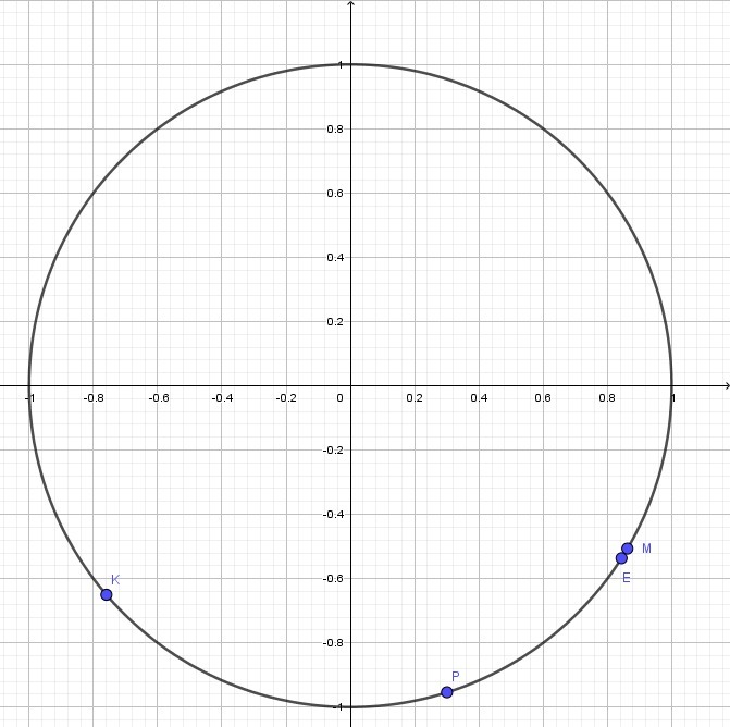 укажите знаки абсцыссы и ординаты заданной точки числовой окружности