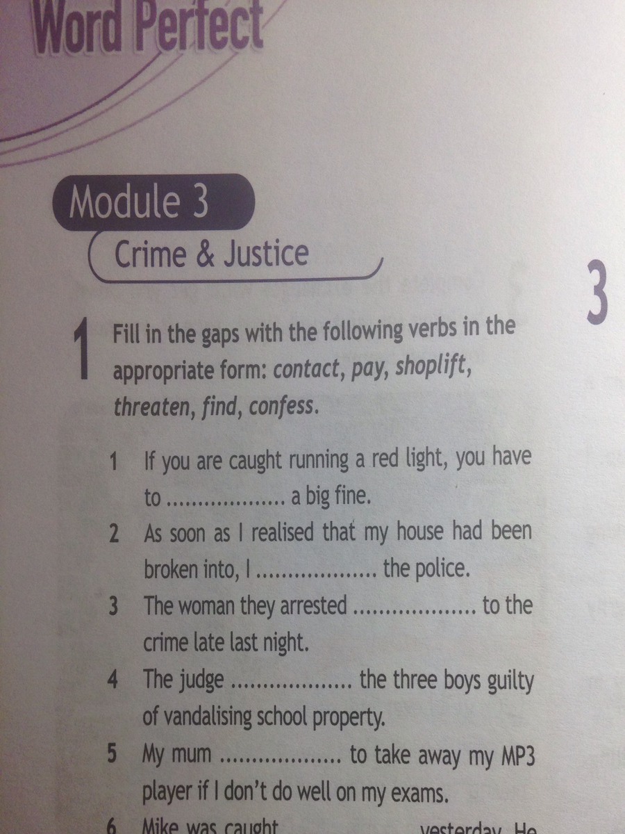 pay, contact, confessed, found, threatened, shoplifted