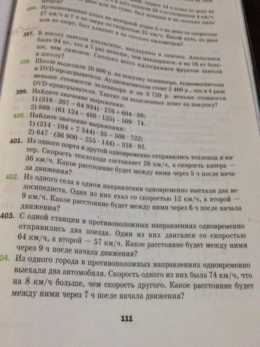 Из одного города в противоположных направлениях одновременно выехали два автомобиля скорость одного из них была 74 км/я что на 8 км/я больше чем скорость другого какое расстояние будет между ними через 7 ч после начала движения? Номер 404 помогите умоляю