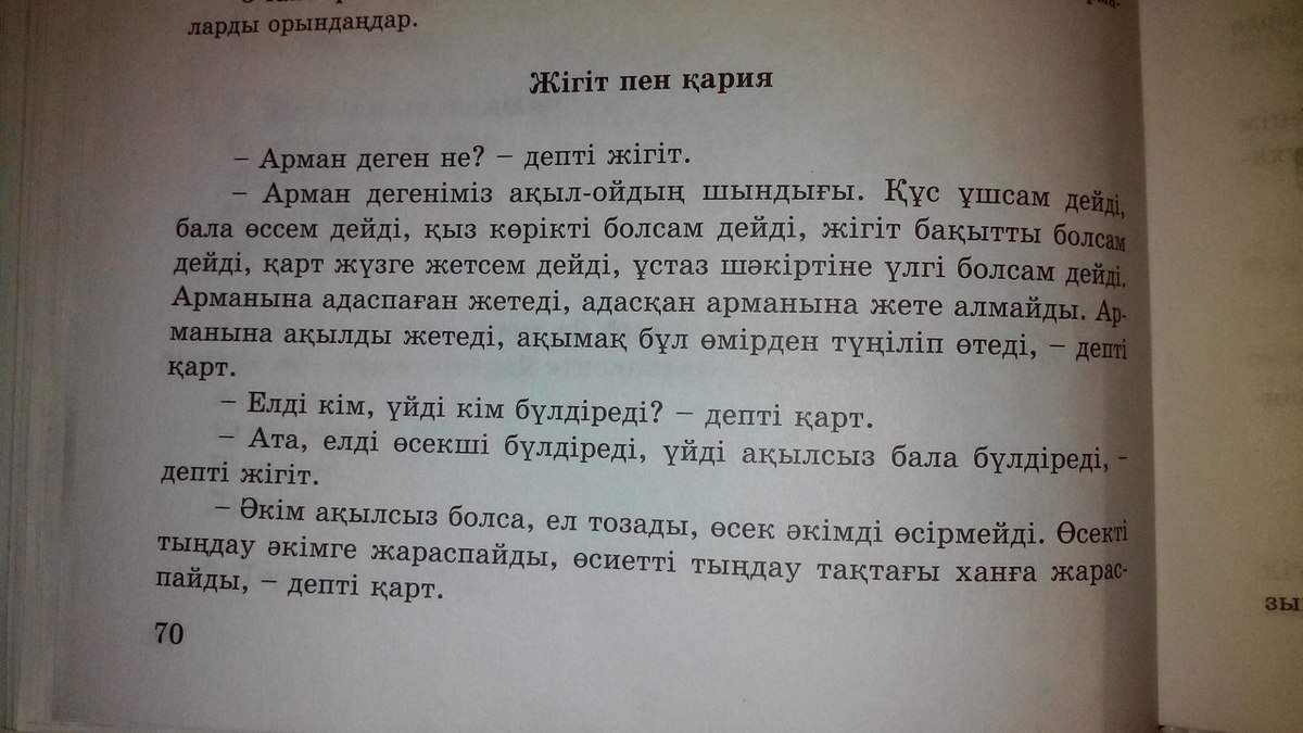 -Народ не будет сплоченный,если аким(правитель) будет глупым,сплетни не помогут ему.Слушать сплетни не к лицу акиму, а слушать наставление не к лицу хану,-сказал старик.