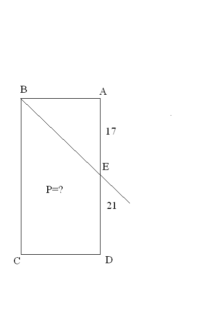 вычислите периметр прямоугольника авсд если биссектриса угла б пересекает сторону ад в точке е и делит её на отрезки ае=17 см и ед=21см