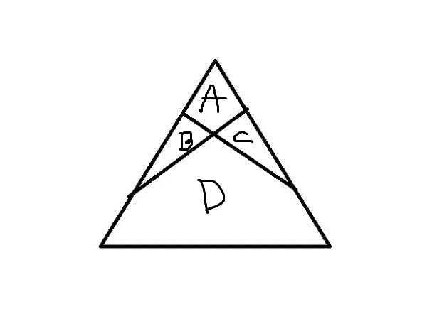 На чертеже провести 2 отрезка так чтобы треугольник разделить на: 2 треугольника, 1 четырехугольник и 1 пятиугольник