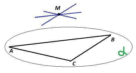 треугольник ABC лежит в плоскости а точка м не принадлежит плоскости а сколько прямых паралельных сторонам треугольника можно провести через точку м
