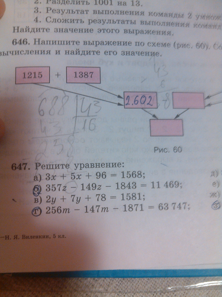 Уравнение номер 2. 357з-149з-1843= 11469. Переносим. 357з-149з=11469+1843