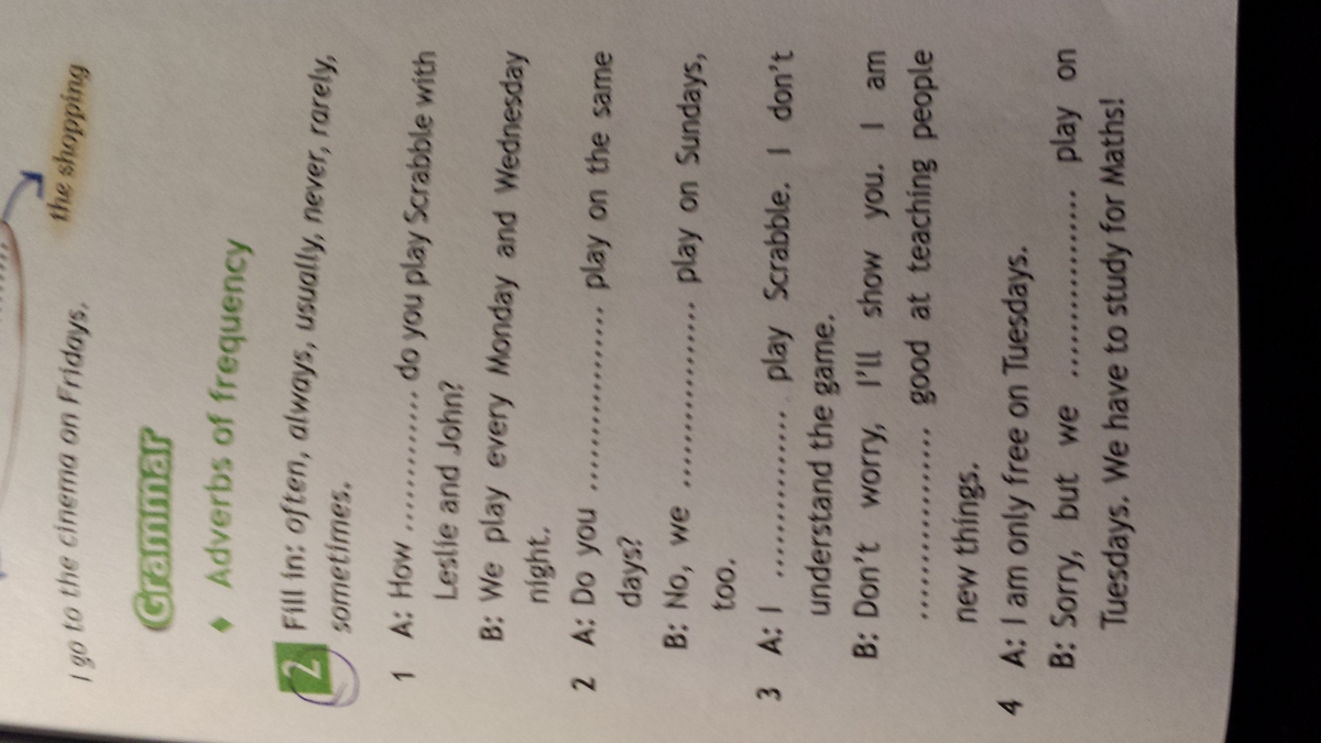 4) Sorry, but we never play on Tuesdays.