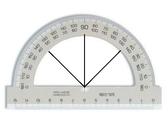 180°:4=45° - берем транспортир и отмеряем 45, 90, 135