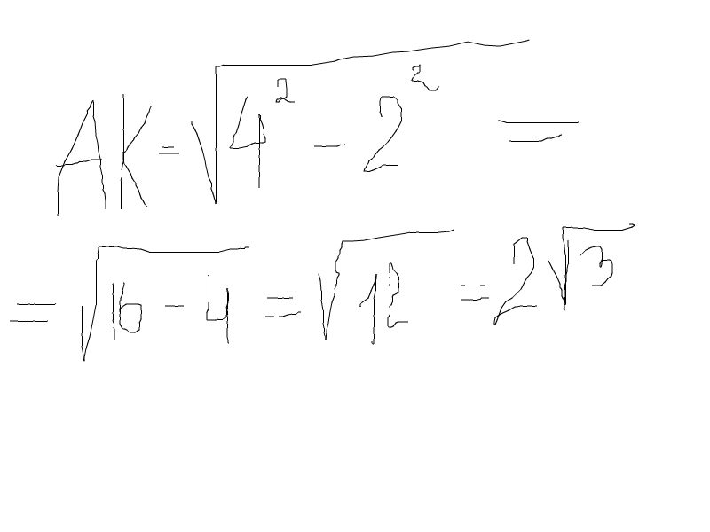 Найдем АК по теореме Пифагора: АК = 2 корня из 3