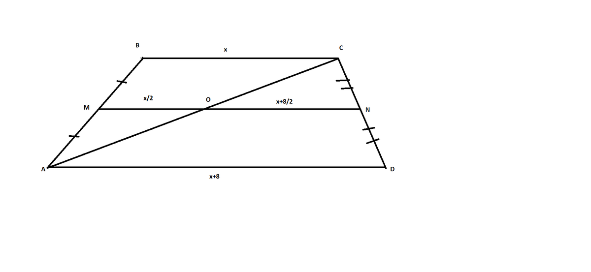 Откуда: MO=x/2 ,ON=(x+8)/2