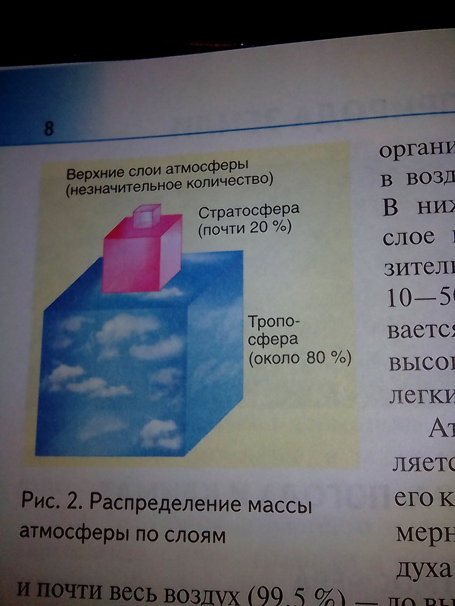 Строение: тропосфера до 8-16км ,стратосфера до 50-55км, верхние слои атмосферы от 55 км