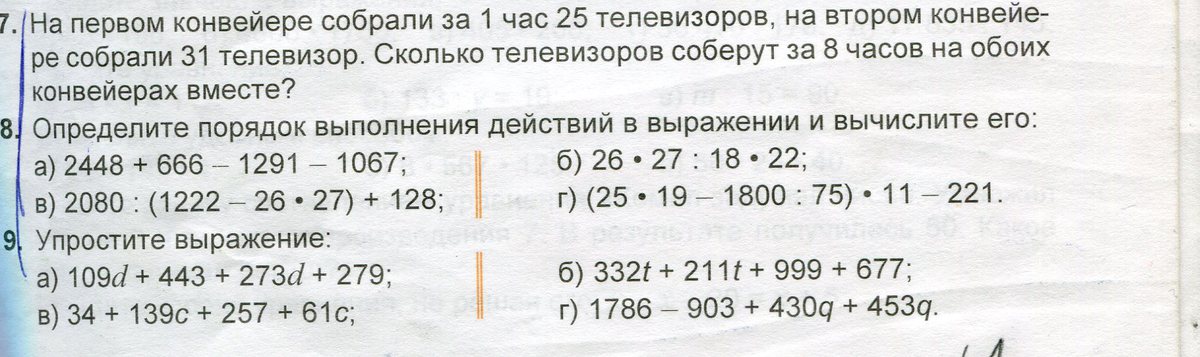 7) (8*25)+(8*31)=448 телевизоров соберут на обоих
