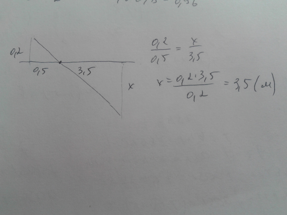 Короткое плечо колодца с журавлём имеет 0.5м , а длинное плечо -3.5м . На сколько метров опустится конец длинного плеча, когда конец короткого поднимится на 0.2м?