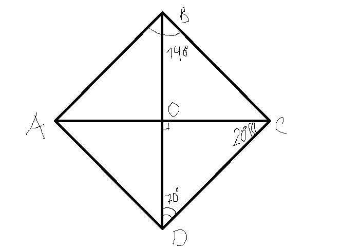 диагональю BD он делится пополам => угол ODC = 70