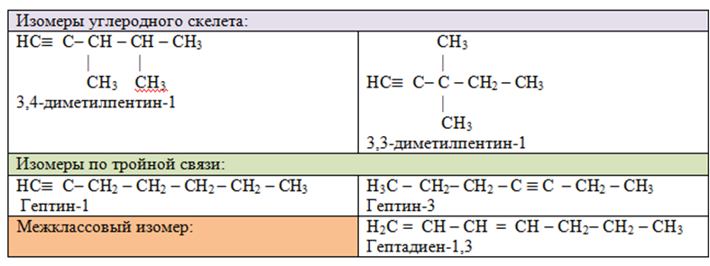 C7h12 составить 2 изомера структурного скилета. 2 изомера по месту положению тройной связи. 1 межкалассовый изомер