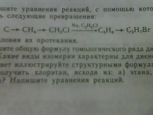 написать уравнения реакций. C-> CH4-> CH3CL->(над стрелочкой NaC2H5Cl )C3H8-> C3Н7Br
