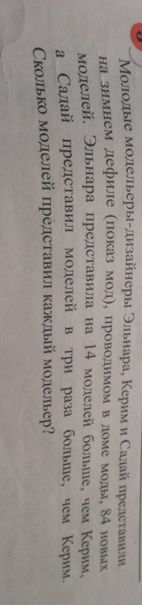 Тогда Эльнара представила на 14 моделей больше, чем Керим, т.е.: х + 14.