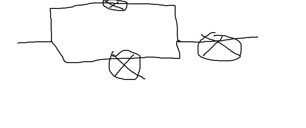 В цепь, состоящую из трех ламп, соединенных по схеме, приведенной на рисунке 148, подано напряжение 90 В. Сила тока, потребляемая от источника, равна 0,5 А. Сопротивление одной из ламп разветвленного участка равно сопротивлению лампы, включенной в неразветленную часть цепи,а сопротивление второй лампы разветленного участка в четыре раза больше.Найти сопротивление,напряжение и силу тока каждой лампы.
