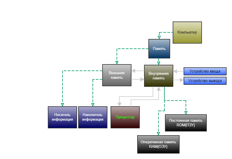 ввода», «устройства вывода», «внутренняя память», «внешняя