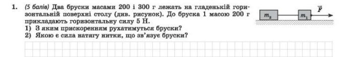 a=F/(m1+m2)=5/(0.2+0.3)=10 м/с^2