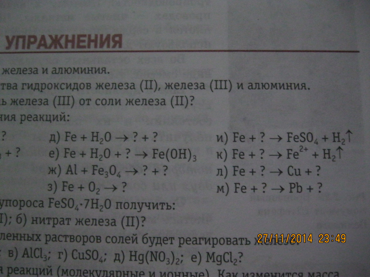 к) Fe+2HCl=FeCl₂+H₂