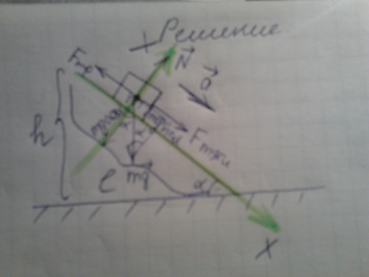 Желательно в решении нарисовать сам рисунок, где наклонная плоскость со всеми обозначениями из условия. Спасибо заранее.