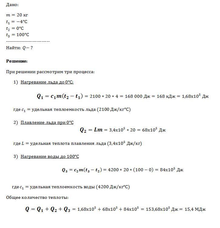 . Рассчитайте количество теплоты, потребное для превращения 20 кг льда при -4С в воду при 100С.