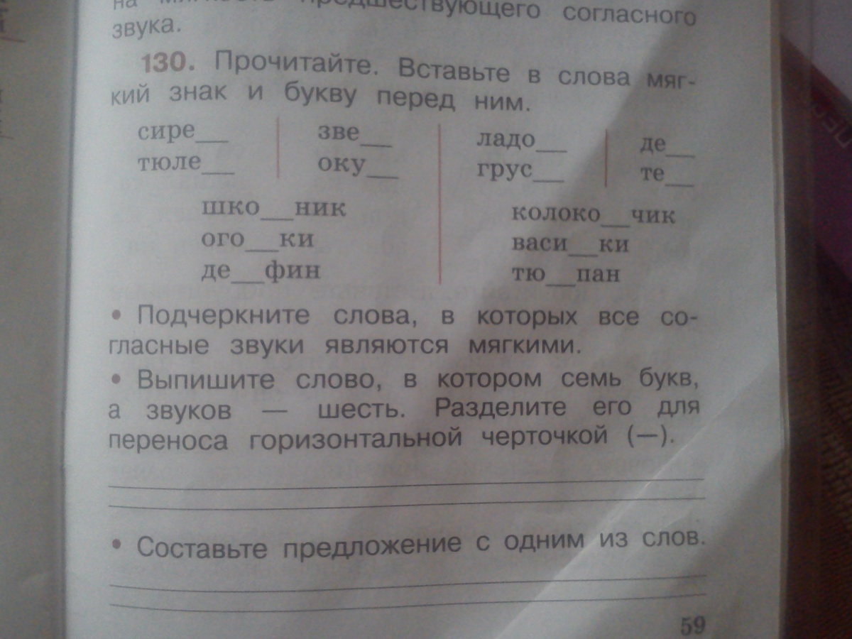 2. Слова,в которых 7 букв, а звуков - шесть: огоньки,дельфин,тюльпан.