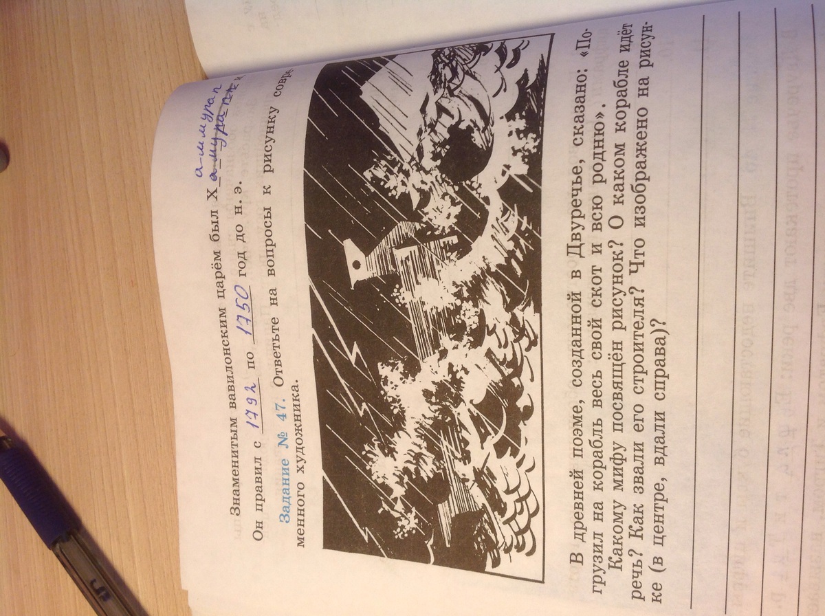 Миф о потопе. Ковчег, который построил Утнапишти. В центре - ковчег, вдали справа - гора.