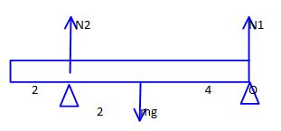 Расстояние между двумя опорами 8 м. Если на эти опоры положить горизонтальную балку массы 100 кг и длины 10 м так, чтобы 2 м балки выступали за левую опору, то сила давления балки на левую опору будет равна