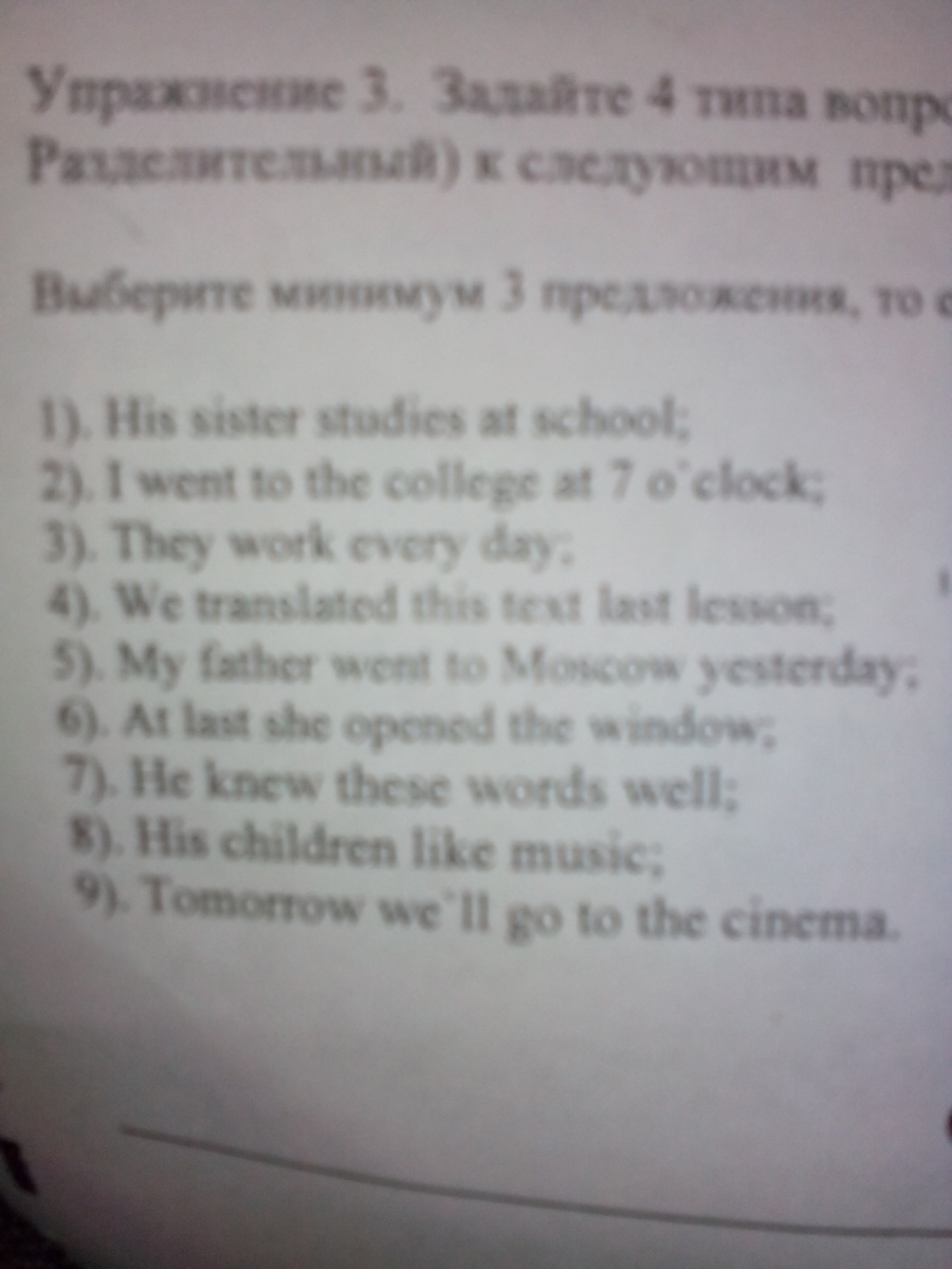 2)Алтернативный вопрос 3)общий вопрос и 4)разделительный