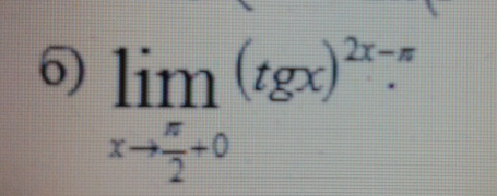 limx-> π -- 2 (tg(x)^(2*x - π)) =tg(π -- 2 )^(2*π -- 2 - π) = 1