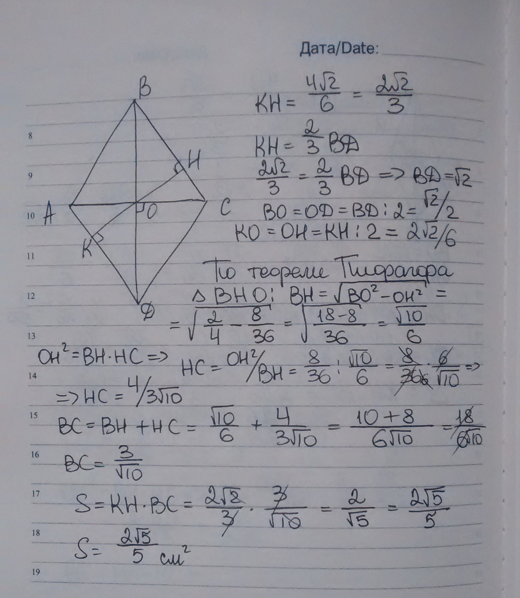 знаете в чем ошибка? Высота выходит из вершины ромба! а у вас KH - это не высота