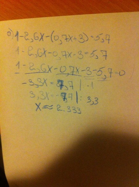 1-2,6x-(0,7x+3)=5,7