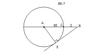 Т.к. ВЕ - касательная, то ВЕ перпендикулярна радиусу АЕ. В получившемся прямоугольном треугольнике АЕВ:
