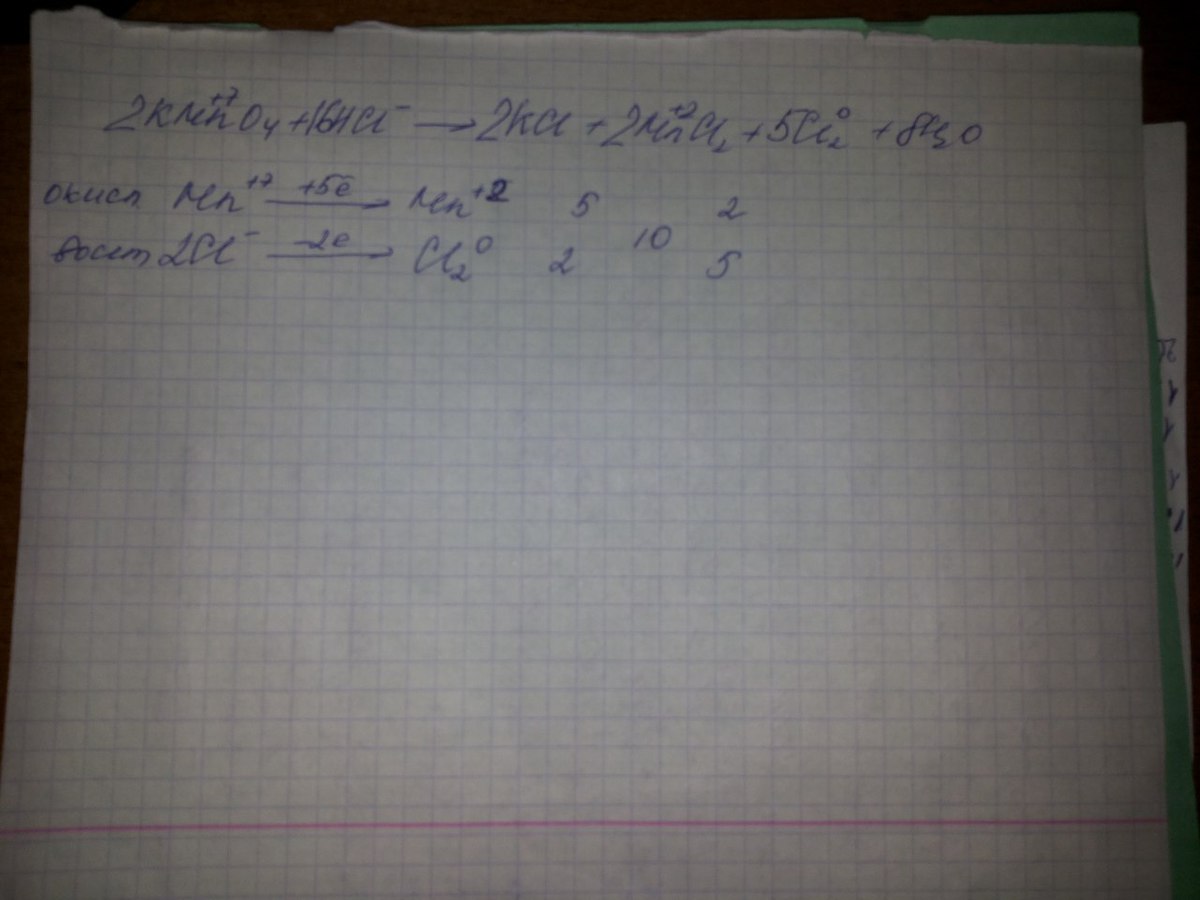 написать окислительно-восстановительный процесс, указав окислитель и восстановитель. kmno4+hcl=kcl+mncl2+cl2+h2o