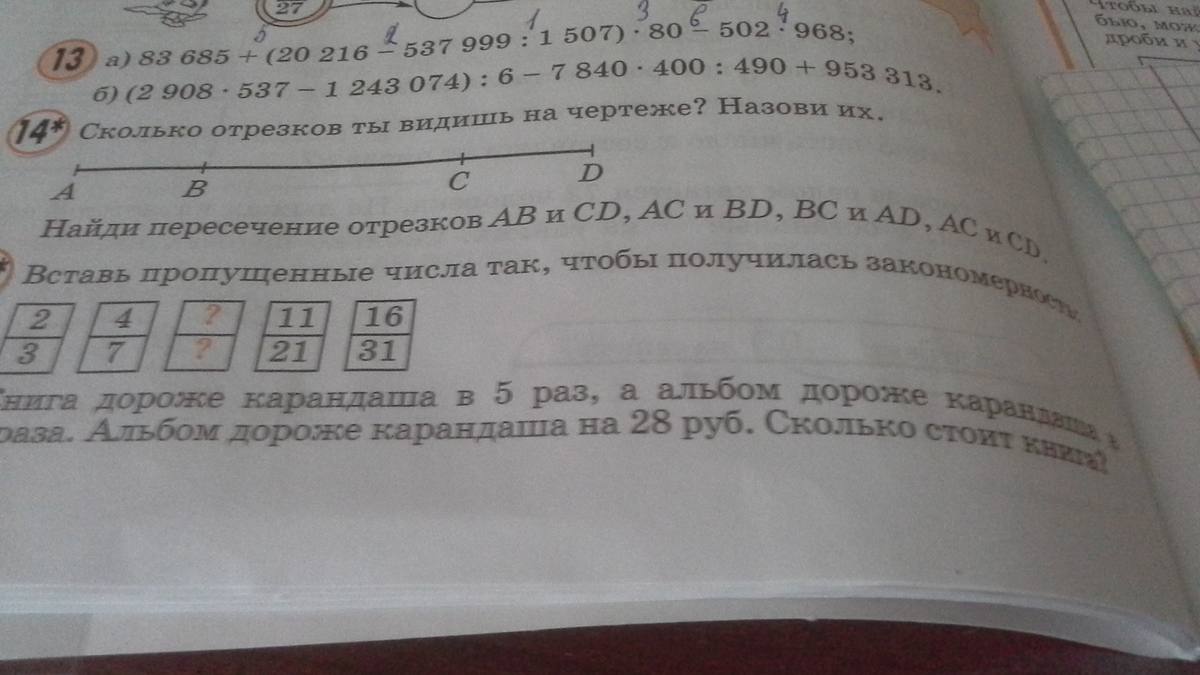 3; 7; 14; 21; 31 ((31-21)+(7-3))/2 = 7 значит 7+7 или 21-7