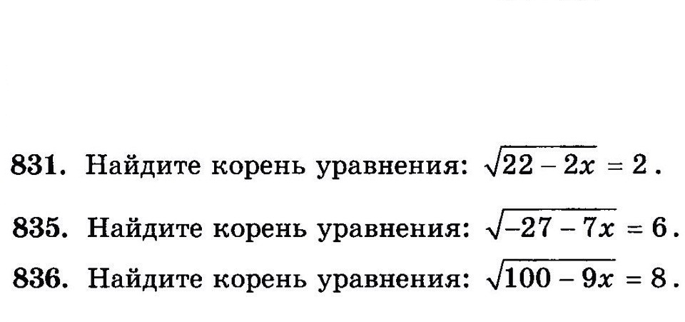 1)√22-2x=2 2)√-27-7x=6 3)√100-9x=8