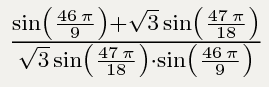 =(sin(46*пи/9)+корень(3)*sin(47*пи/18))/(корень(3)*sin(47*пи/18)*sin(46*пи/9))