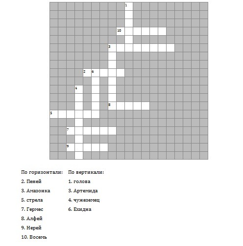 12 подвигов Геракла и вопросы к ним (сетка кроссворда в приложении) :
