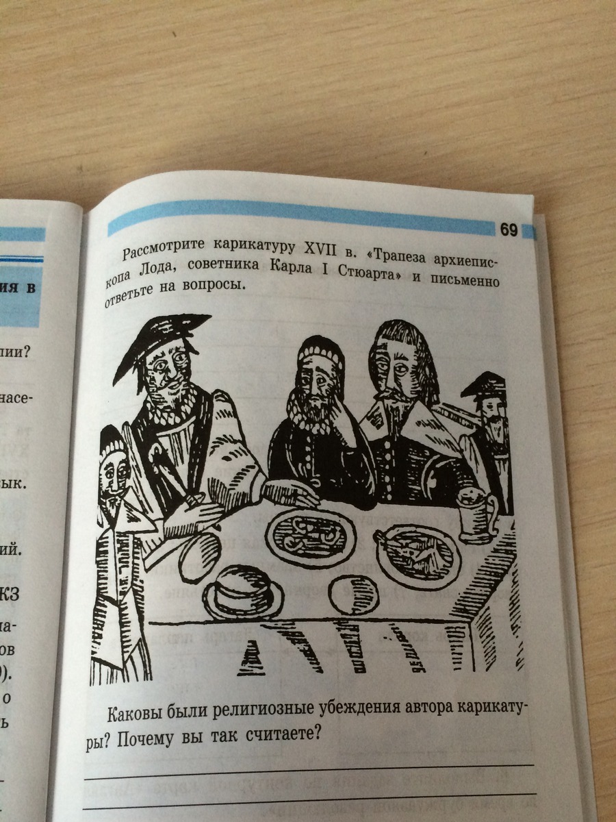 Рассмотрите карикатуру 17века "Трапеза архиепископа Лода,советника Карла 1 Стюарта" и письменно ответьте на вопросы:
