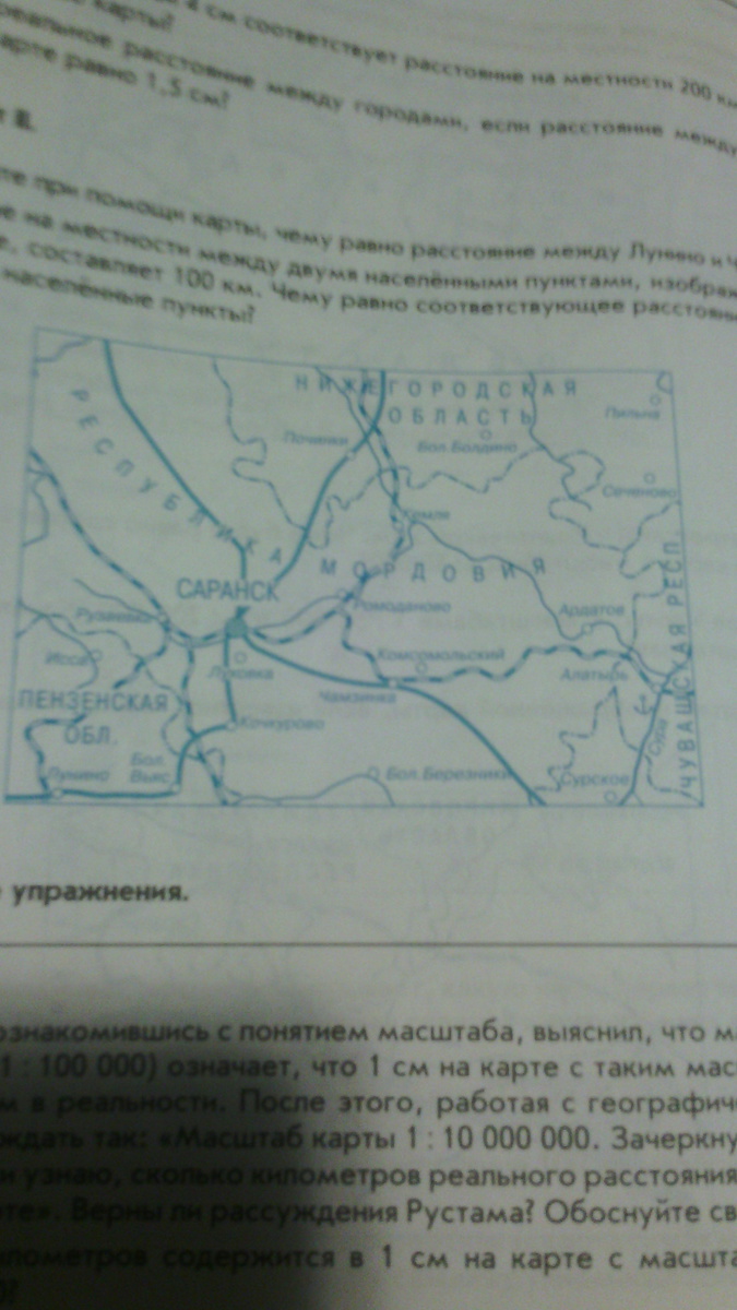 двумя населенными пунктами 100 км.Чему равно расстояние на карте?